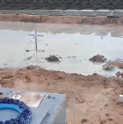 Imagens feitas por visitantes mostram o Cemitério Campo da Saudade tomado por lama e poças de água.